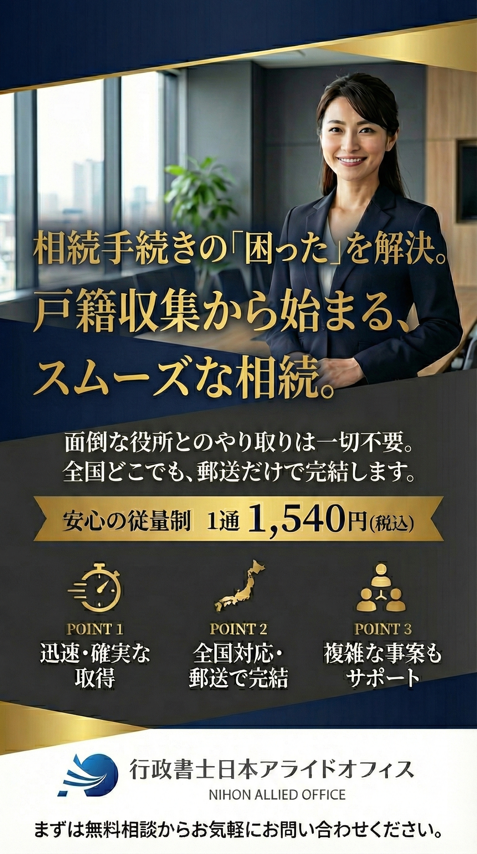 - 本サービスは、行政書士日本アライドオフィスが提供するサービスです。